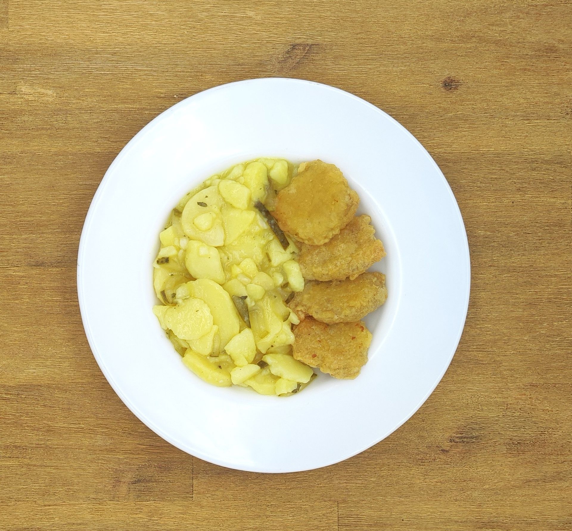 Essig-Öl-Dressing dazu 4 vegetarische Nuggets auf Reisbasis