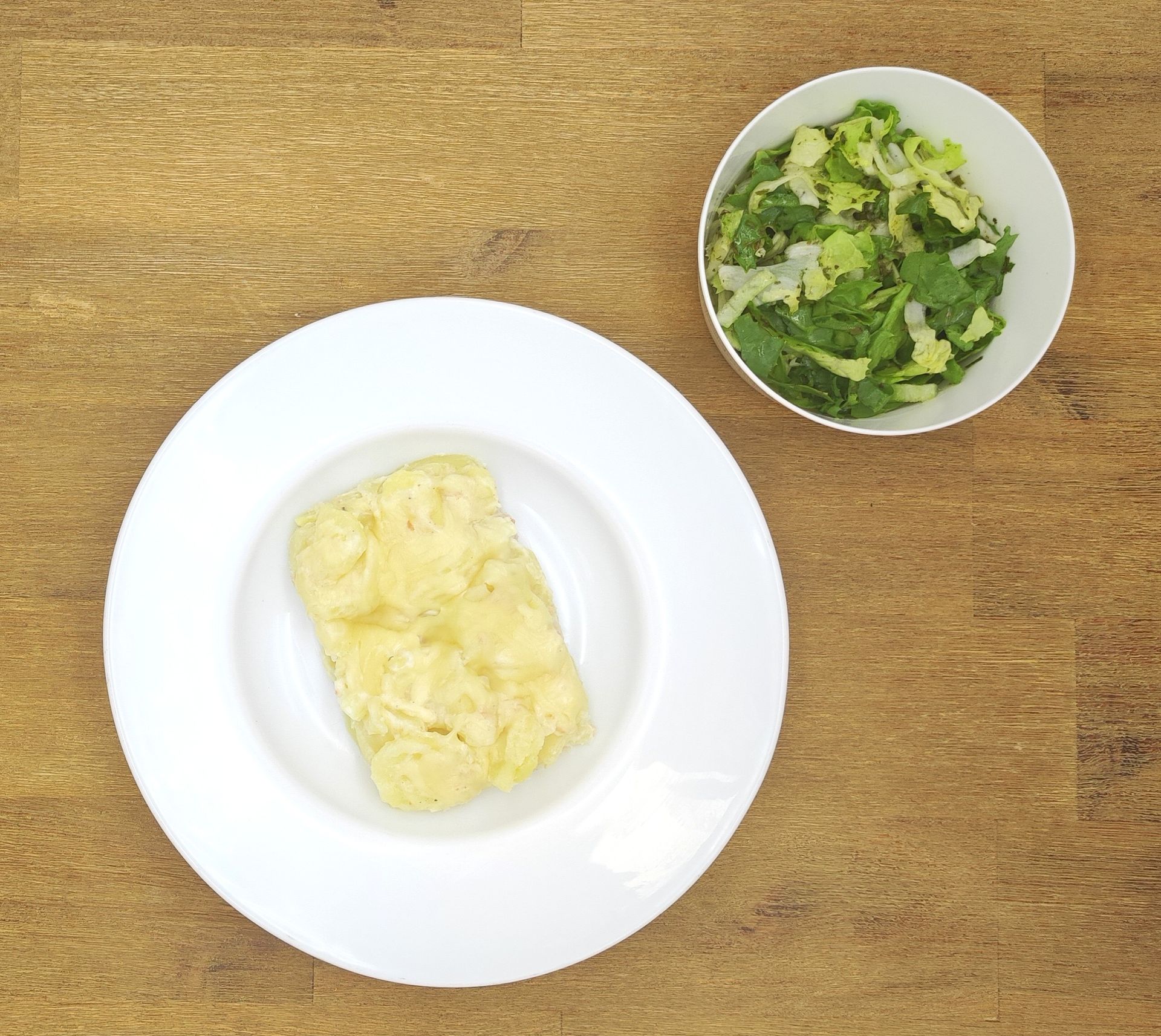 Gouda überbacken, dazu Blattsalat in Essig-Öl-Dressing